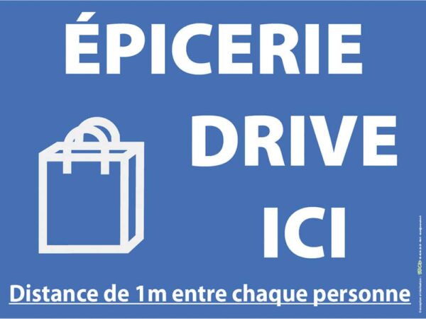 Panneau « Épicerie Drive ici – Distance de 1m entre chaque personne »