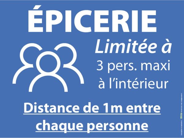 Panneau « Epicerie limitée à 3 pers. maxi à l’intérieur – Distance de 1m entre chaque personne »