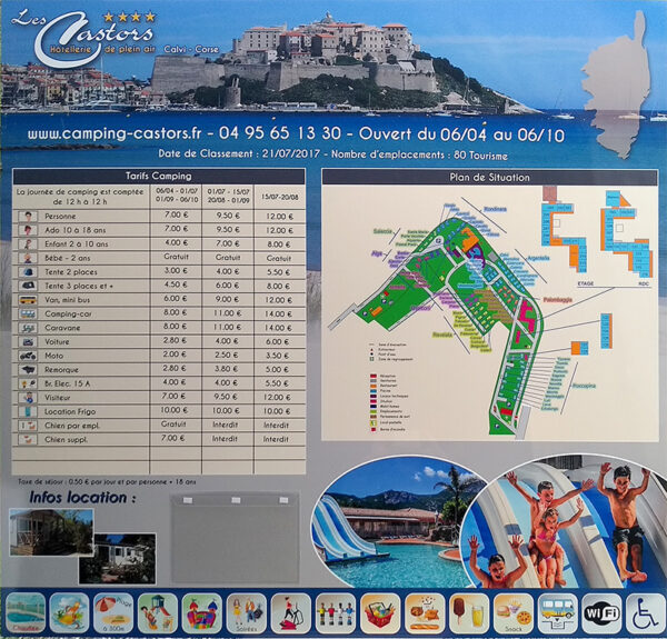 Étiquettes : camping, entrée, panneau, plan, signalétique camping, tarifs
