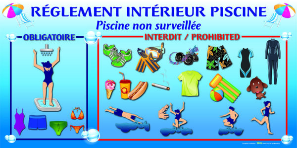 Étiquettes : enfants, interdit, jeux, obligatoire, piscine, réglement, signalétique